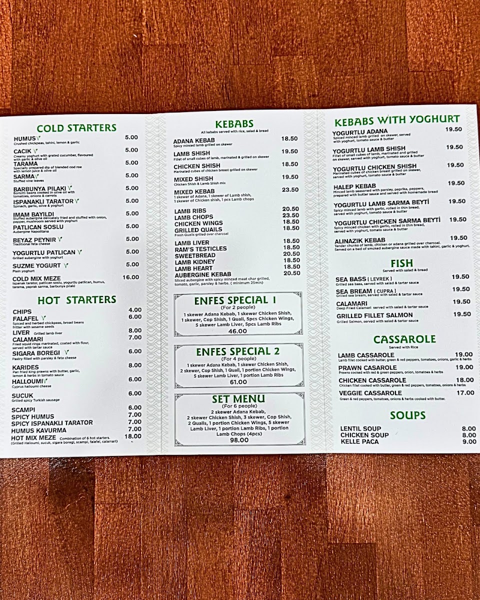 Welcome to Enfes Ocakbasi Haringey, a delightful destination for authentic Turkish cuisine nestled in the heart of Harringay. This vibrant eatery boasts a menu that celebrates the rich flavors of Turkey with a focus on expertly grilled kebabs and an array of tantalizing mezes. Each meal begins with generous servings of hummus, ezme, cacik, and fresh salads, setting the stage for a memorable culinary experience.
